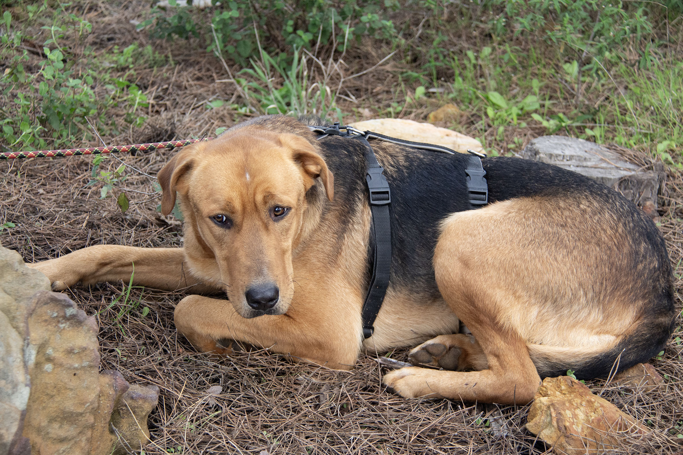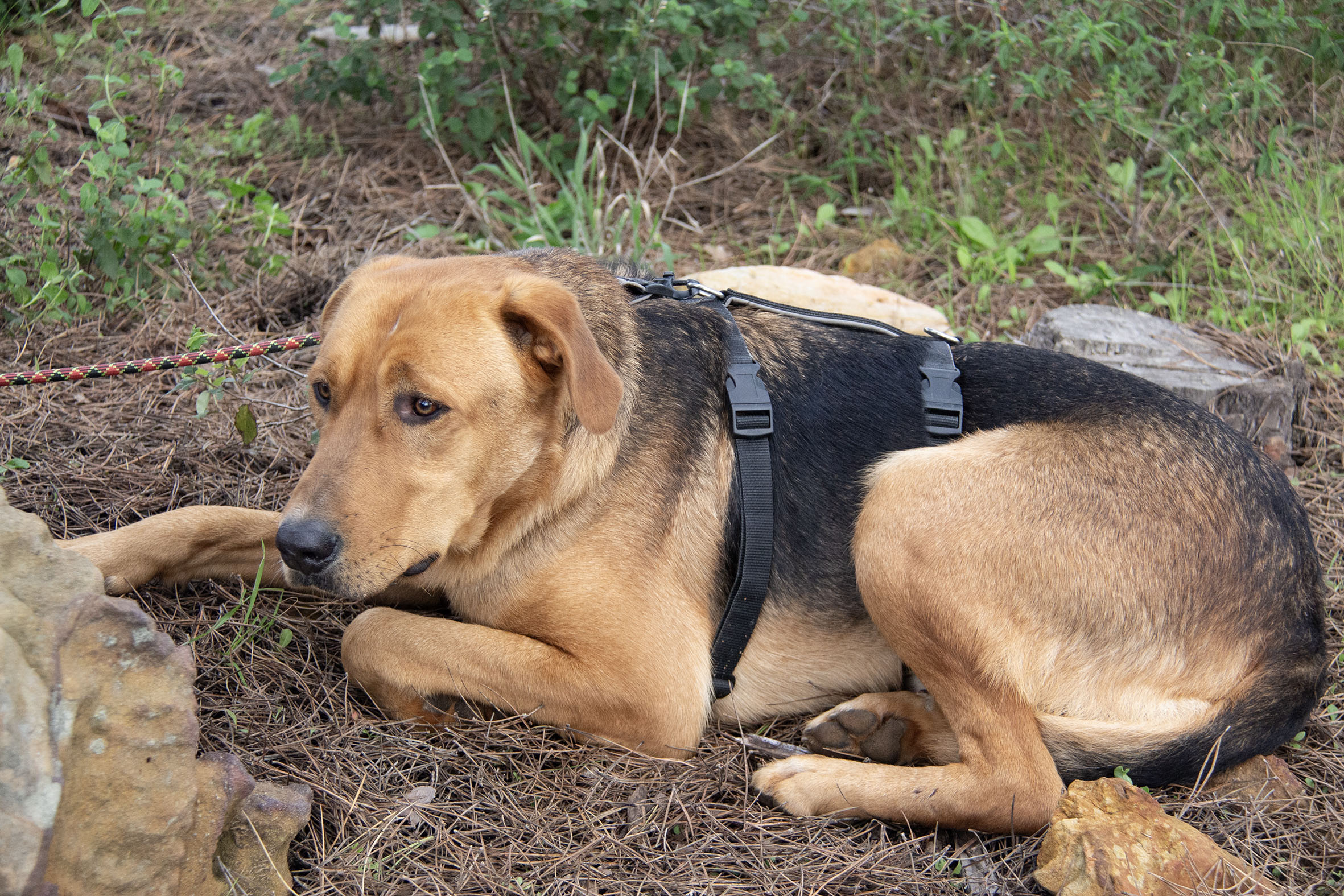 Er braucht nach wie vor eine sichere und klare Führung, die ihm hilft, schwierige Situationen zu meistern und die ihm beisteht. Er sucht gerne Gudelis im Gras und frisst allgemein gerne. Sein neues Zuhause sollte ruhig, ländlich, hundeerfahren, liebevoll und geduldig sein. Ein selbstsicherer Ersthund würde Tambo sehr helfen.